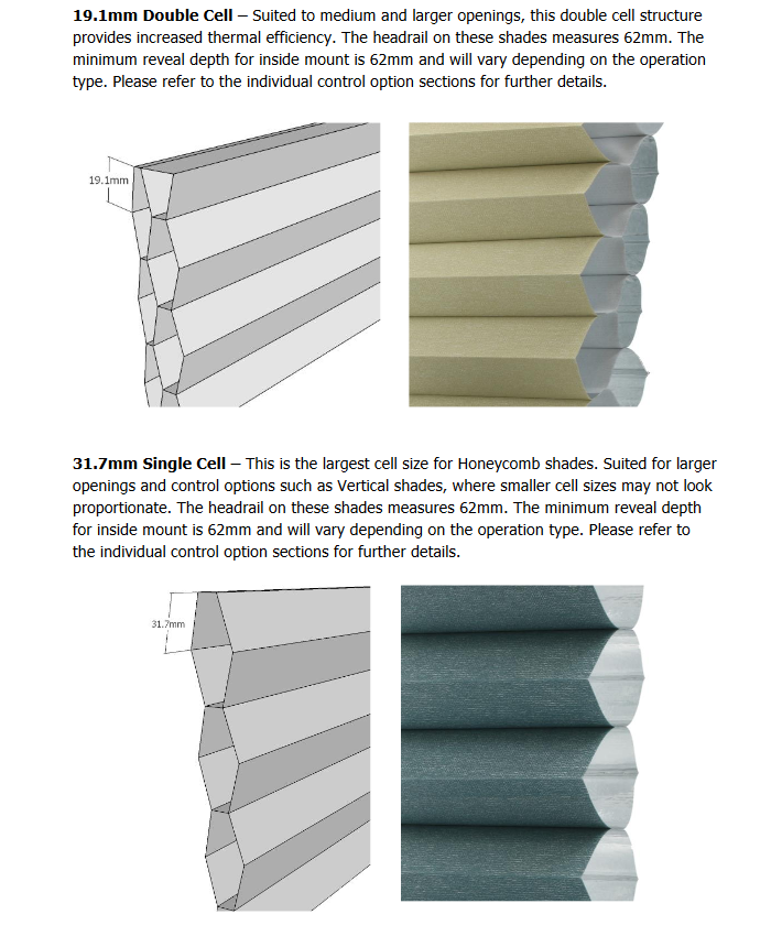 Cell Sizes: In Australia, honeycomb blind cell sizes are typically measured in millimeters (mm).